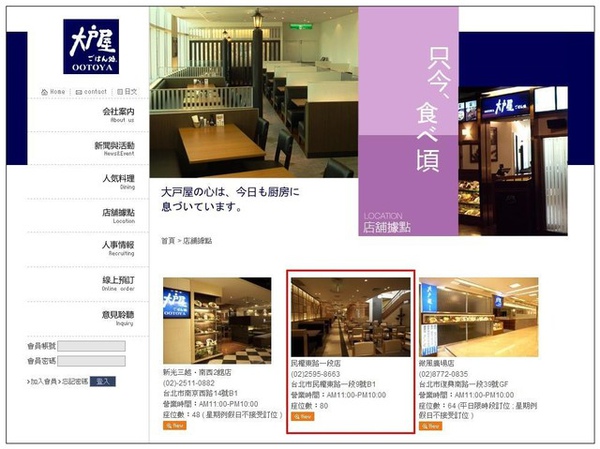 台北的大戶屋 J 只推民權店,其它二家都在百貨美食街,用餐時間都要排隊又很吵,民權店都是商業客戶及日本人去的地方,場所大又安靜,也比較舒適,重點是,不用訂位,一定有位置.這是討厭等待的 J 極愛它的原因之一.因為場地大不用等待,當然也不會有用餐時間的限制,否則我們怎會坐到人家都要打烊了還欲罷不能呢.哈! 再者是,在台北這樣的食材和價格,真的很親人.不嚐就太可惜了!